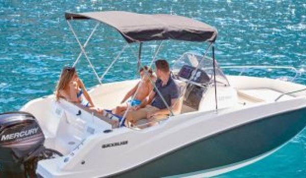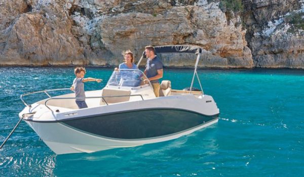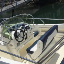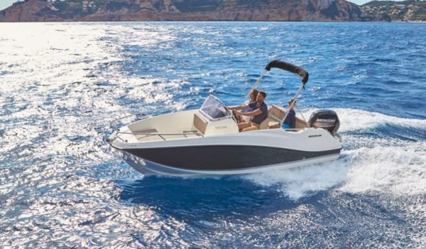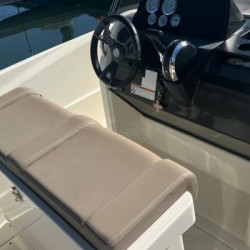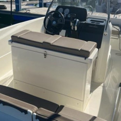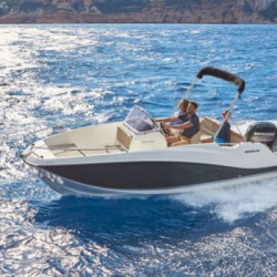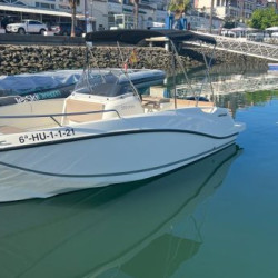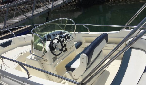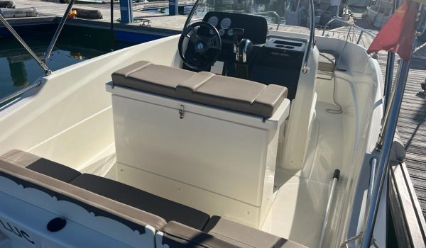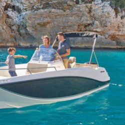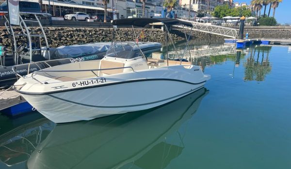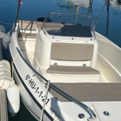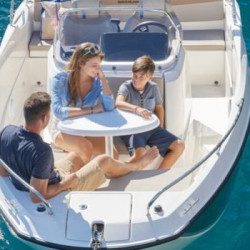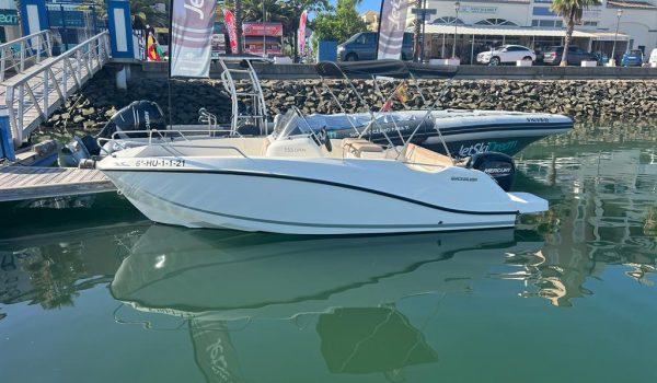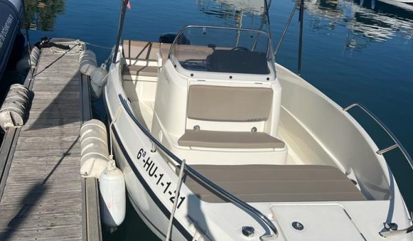 Nuestro barco de reciente adquisición Quicksilver 555 Activ Open de alquiler en la Costa de la Luz (Huelva y Cádiz) y el Algarve portugués ideal para paseos de día gracias a su fácil manejo y estabilidad sin igual. Se trata de una lancha versátil ya que consta de solarium en proa que puede convertirse fácilmente en mesa con asientos en U, una amplia bañera y plataforma de baño con escalera fácilmente accesible.